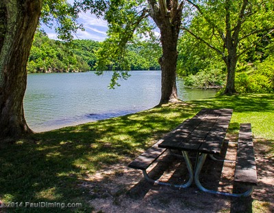 The CCC's created a 108 acre lake by building a dam on Hungry Mother Creek. Hungry Mother offers a beach with bathhouse, boats, fishing pier, campgrounds, cabins, gift shop, visitor center, a six-bedroom family lodge that sleeps 15, hiking and biking trails, and restaurant.